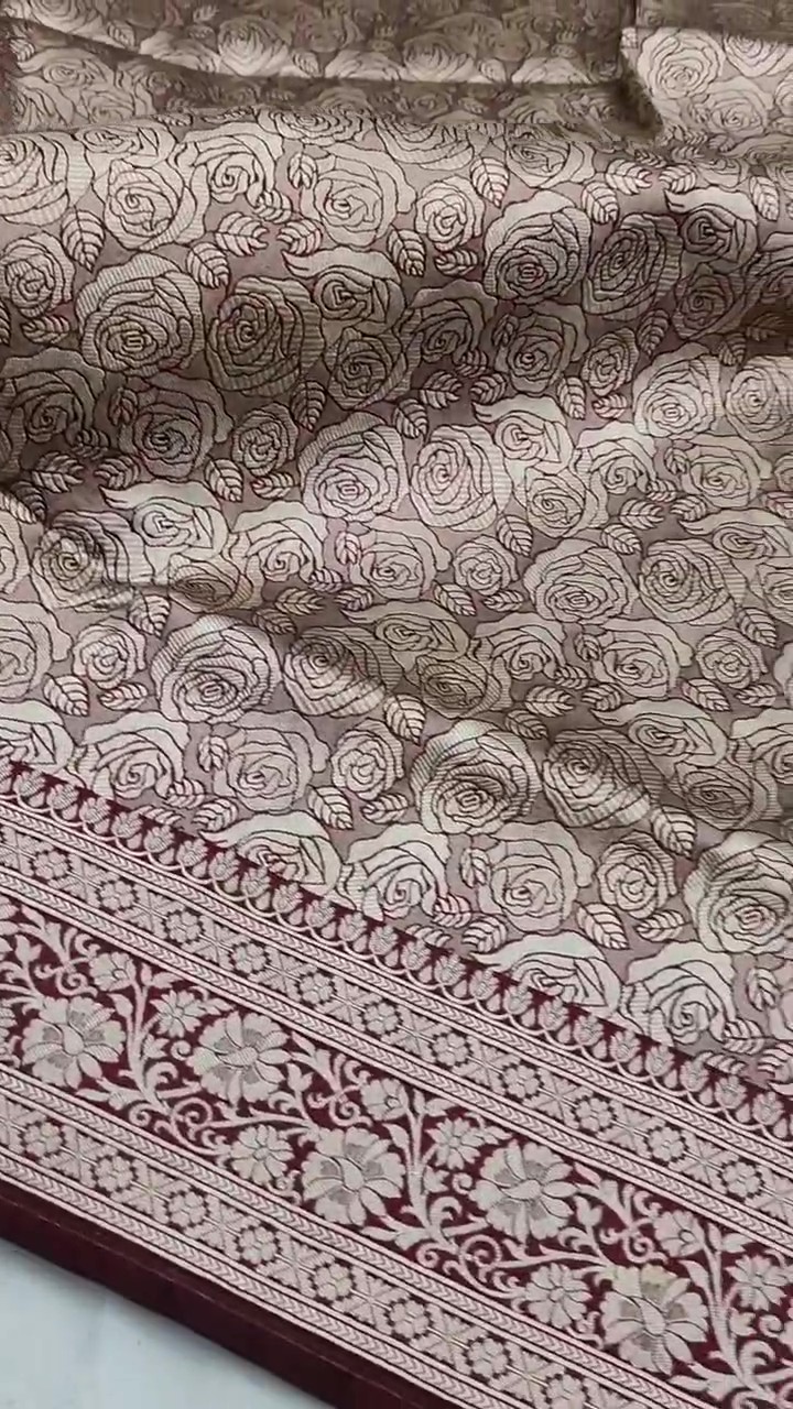Pinkish Beige Banarasi Handloom Katan Silk Brocade Saree