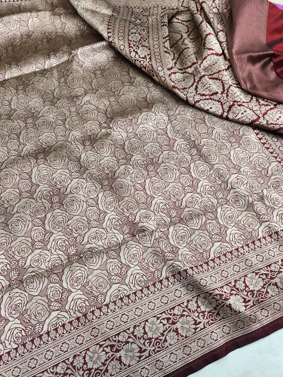 Pinkish Beige Banarasi Handloom Katan Silk Saree