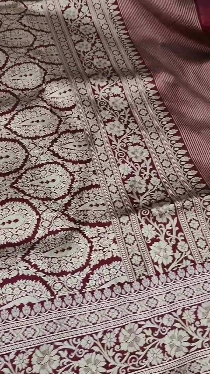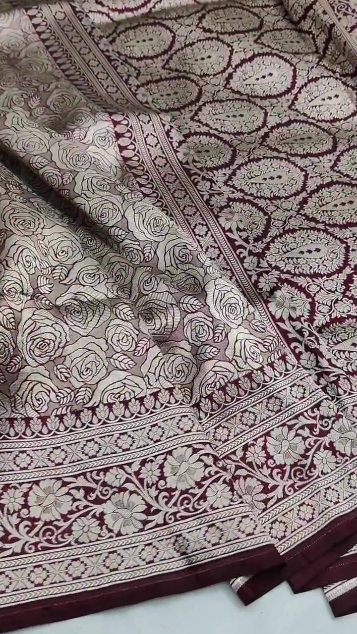 Maroon Banarasi Handloom Katan Silk Kaduwa Meenakari Saree
