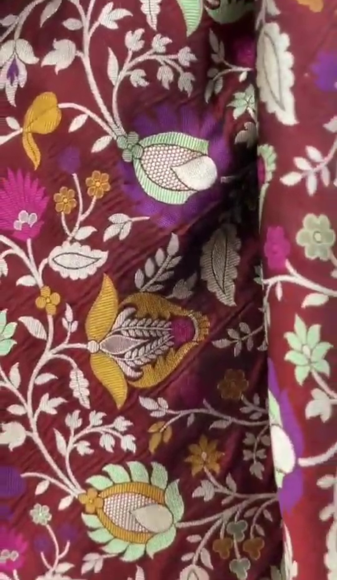 Wine Banarasi Handloom Katan Silk Meenakari Saree