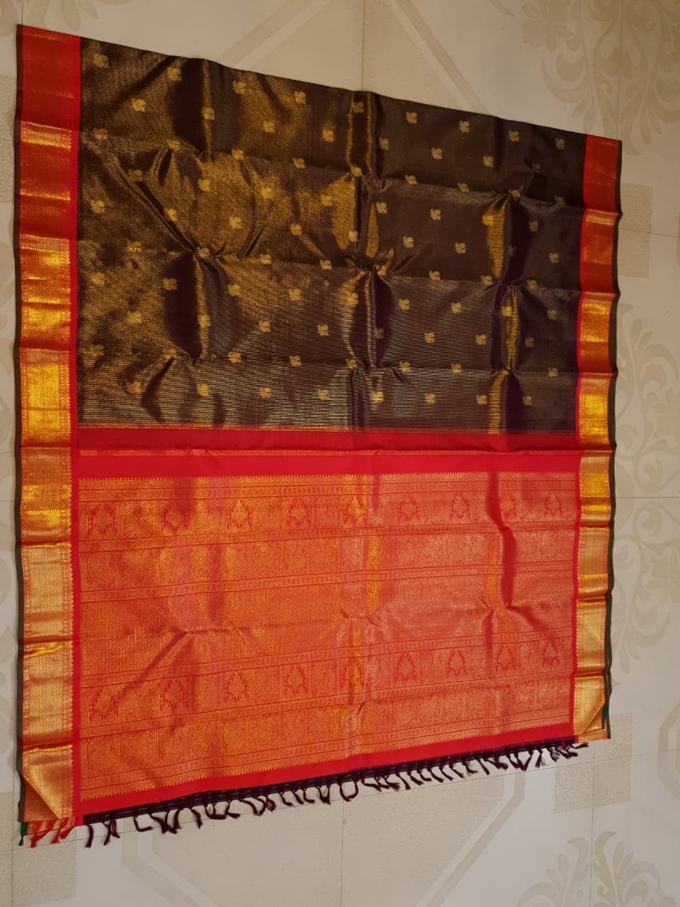 Maroon Kanchipuram Handloom 3G Pure Gold Pattu Silk Korvai Saree
