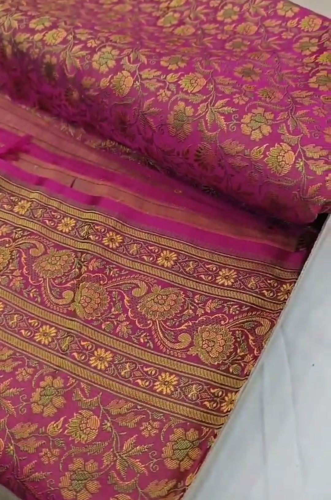 Magenta Banarasi Semi Katan Silk Tanchoi Brocade Saree