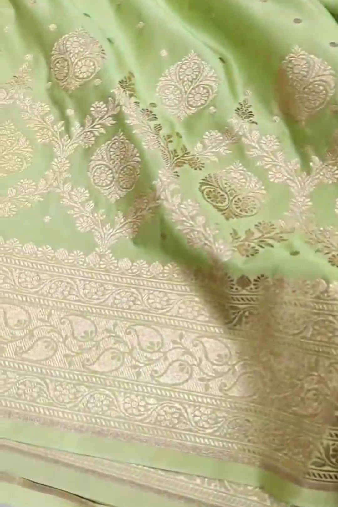 Pastel Green Banarasi Satin Katan Silk Saree