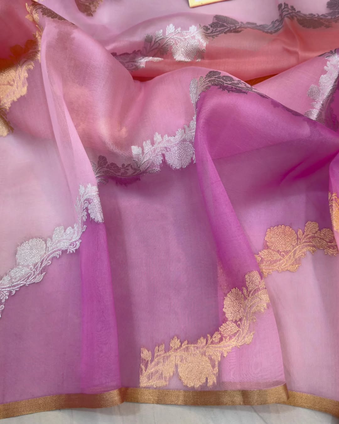 Rose Banarasi Handloom Kora Organza Silk Saree
