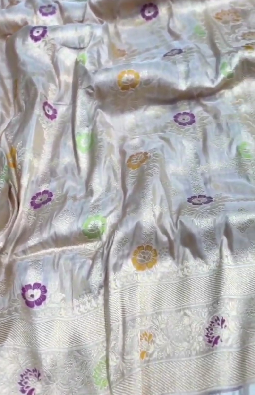 Beige Banarasi Handloom Katan Silk Meenakari Saree