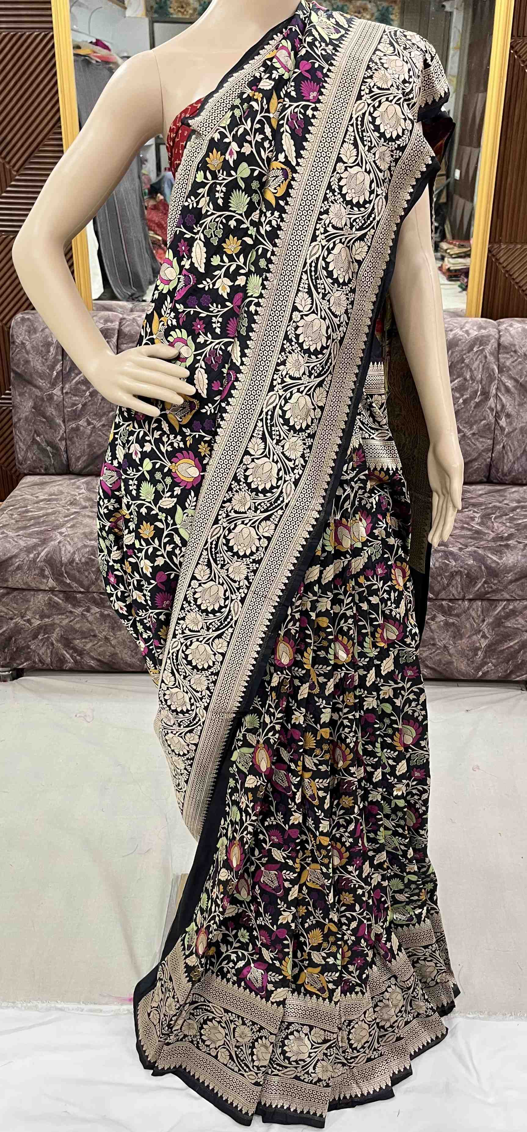 Black Banarasi Handloom Katan Silk Rangkaat Meenakari Saree
