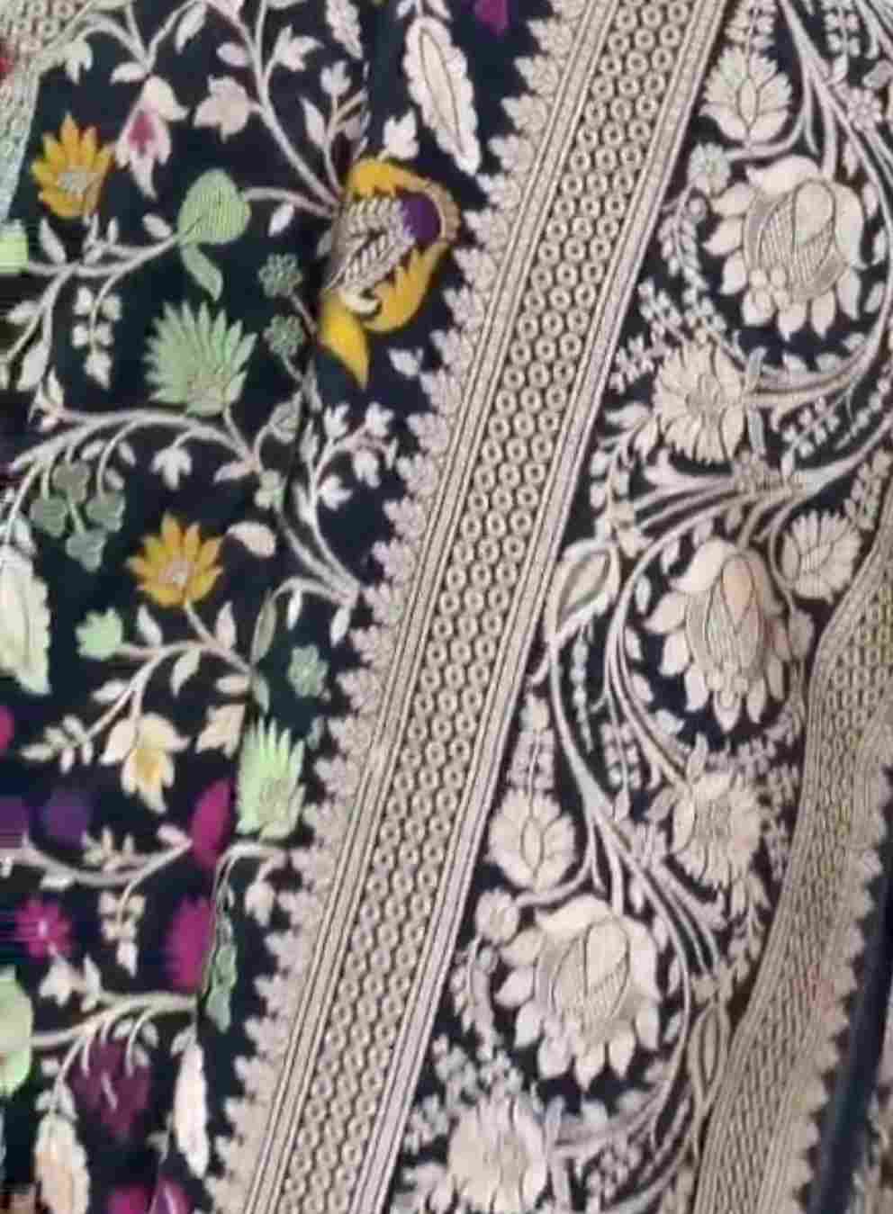 Black Banarasi Handloom Katan Silk Kashi Ghat Meenakari Saree