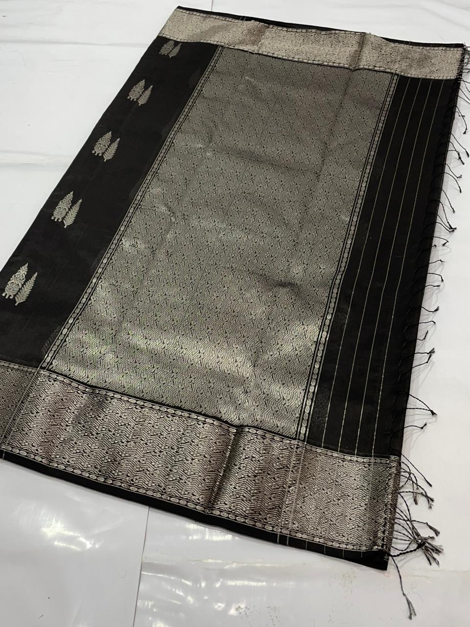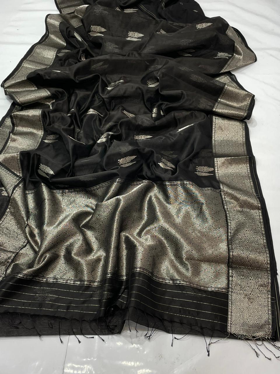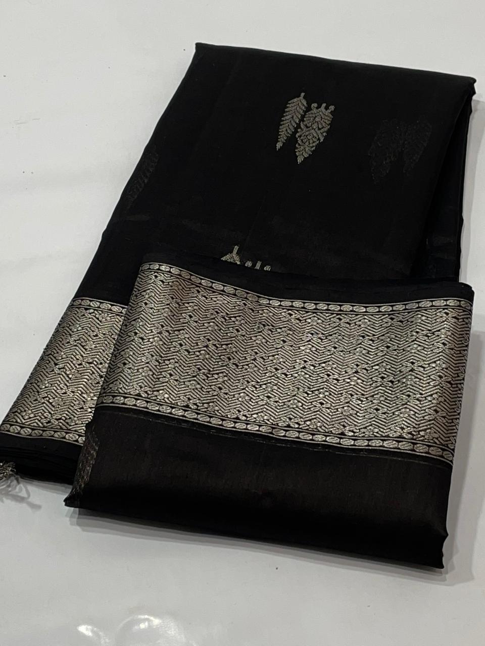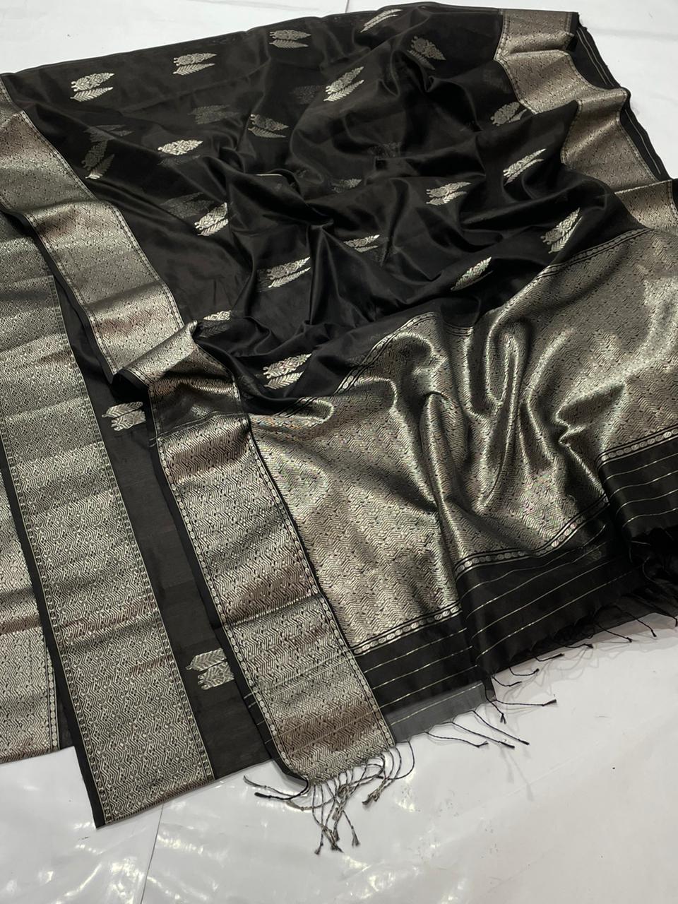 Black Chanderi Handloom Pattu Silk Saree