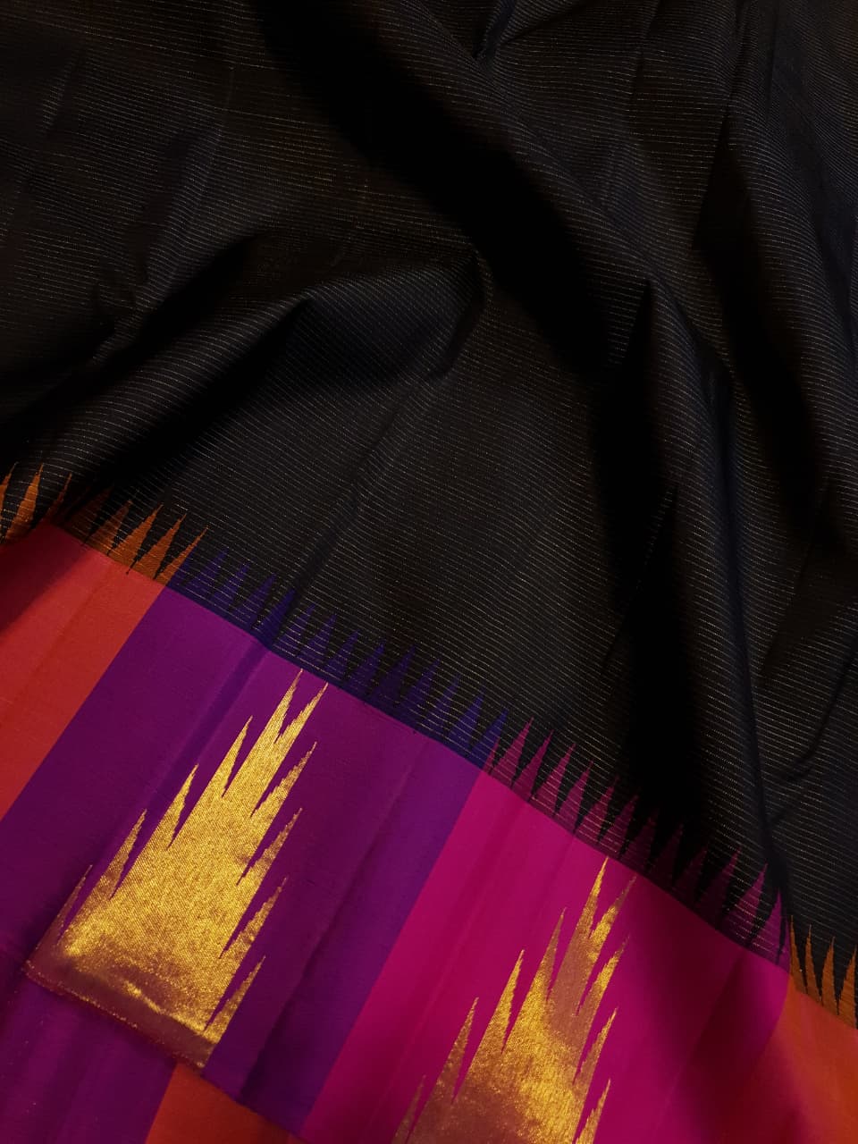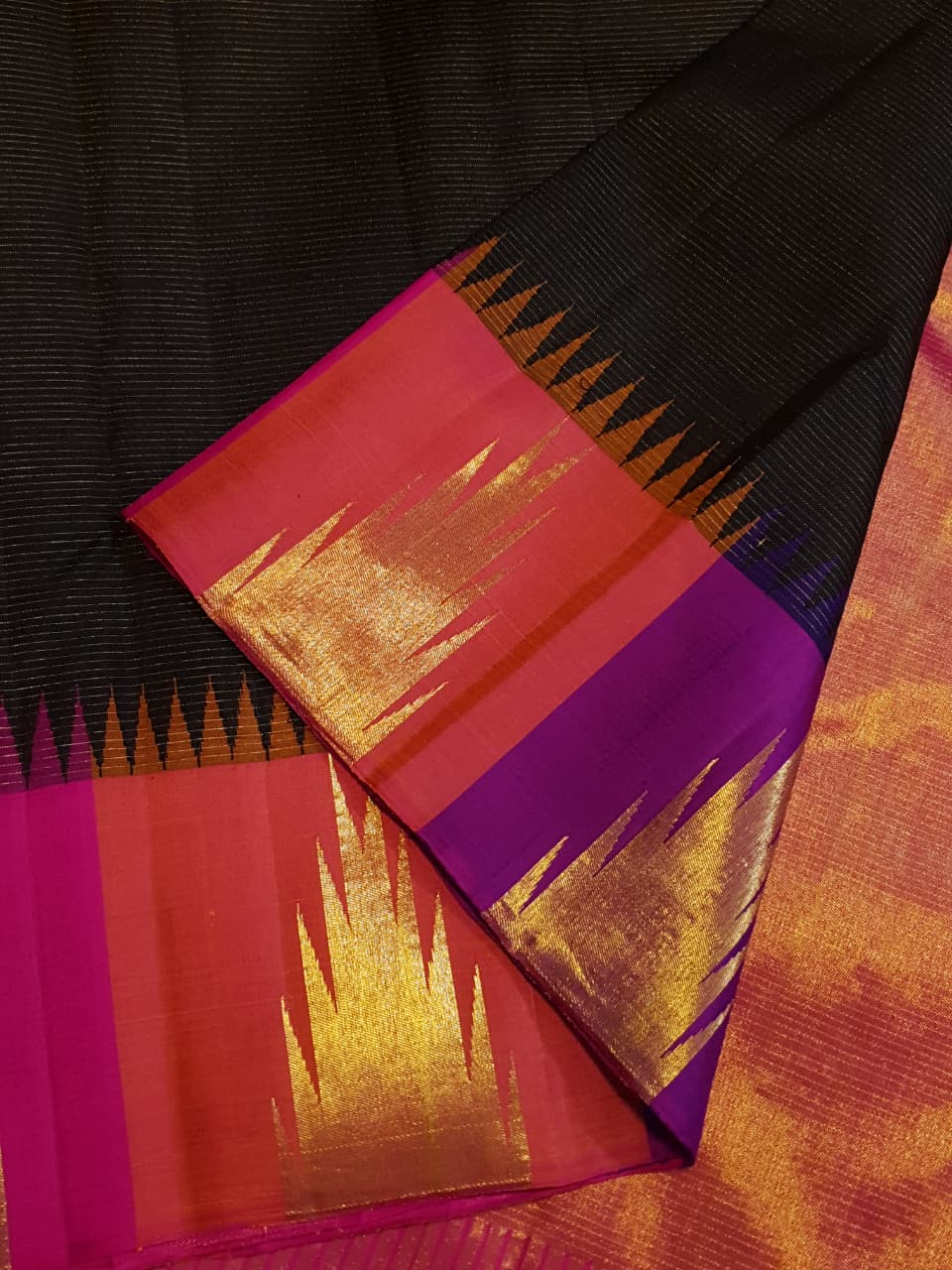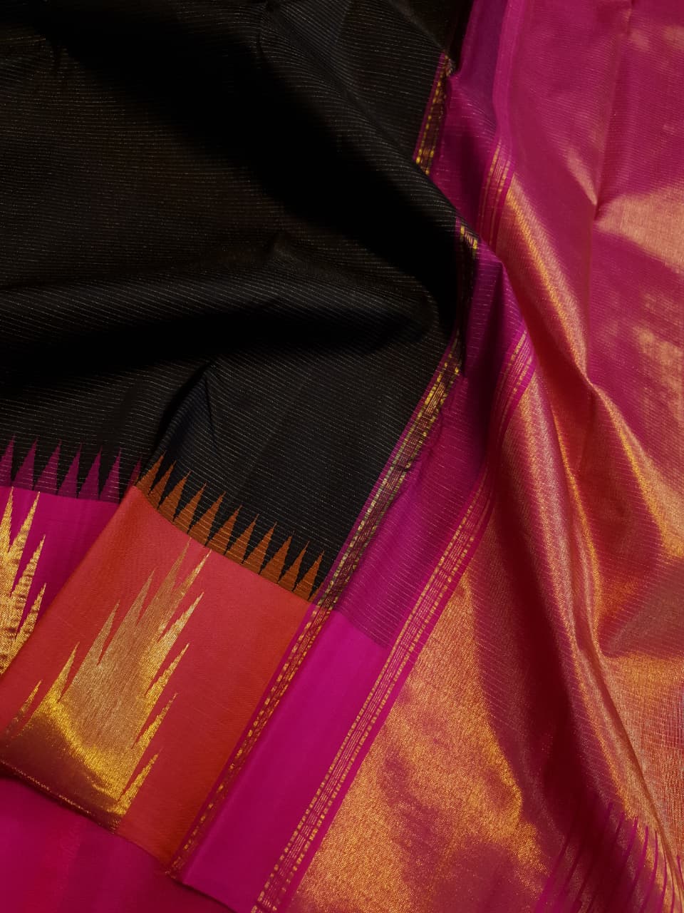 Black Kanchipuram Handloom 2G Gold Korvai Pattu Silk Saree