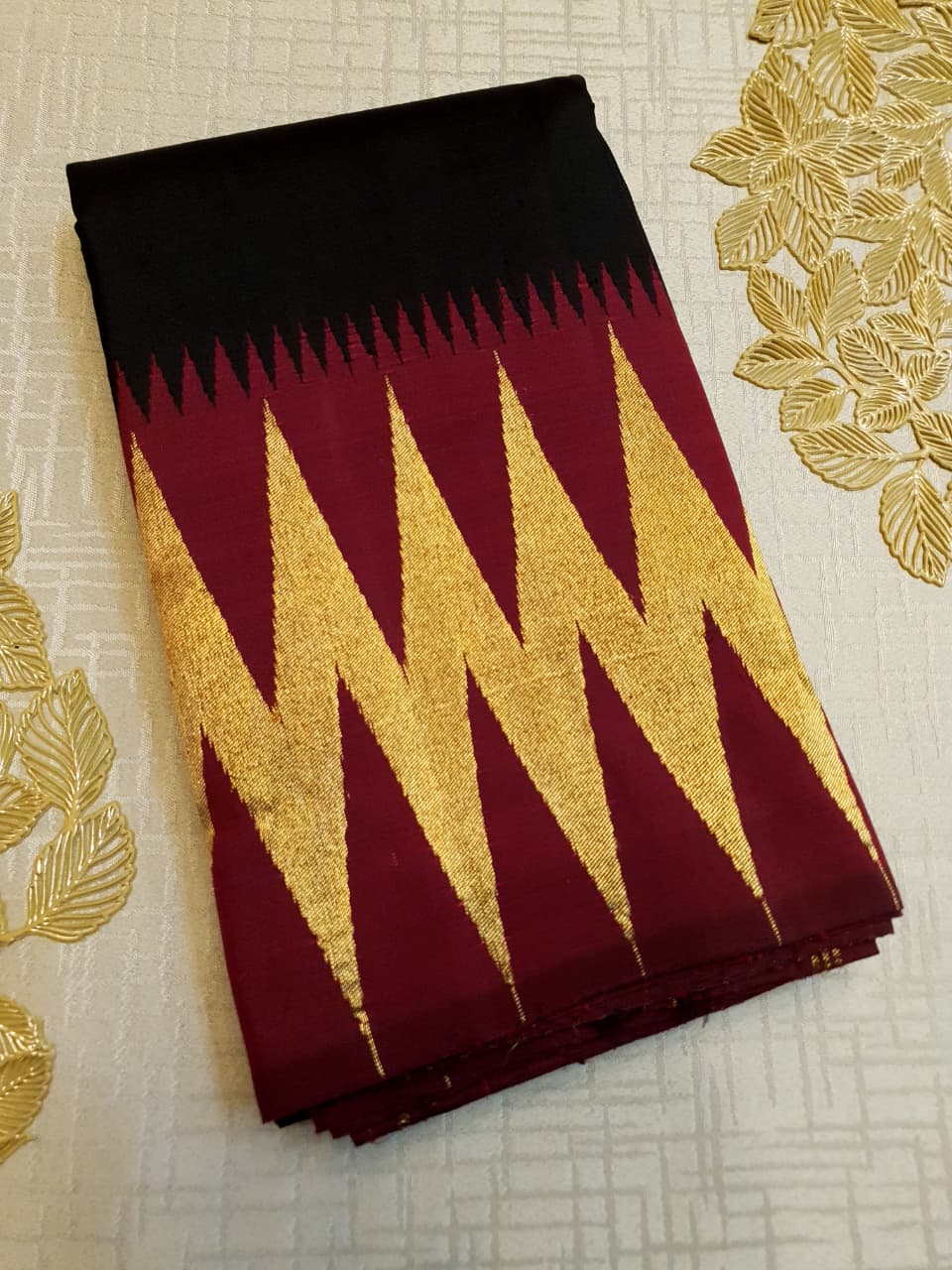 Black Kanchipuram Handloom 2G Gold Korvai Silk Saree