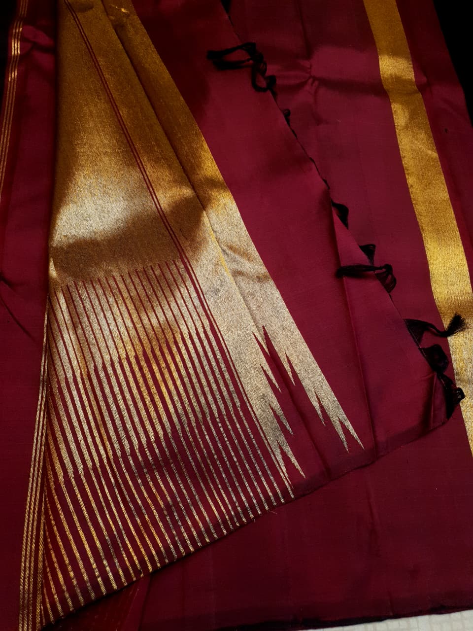 Wine Kanchipuram Handloom 2G Gold Pattu Silk Saree