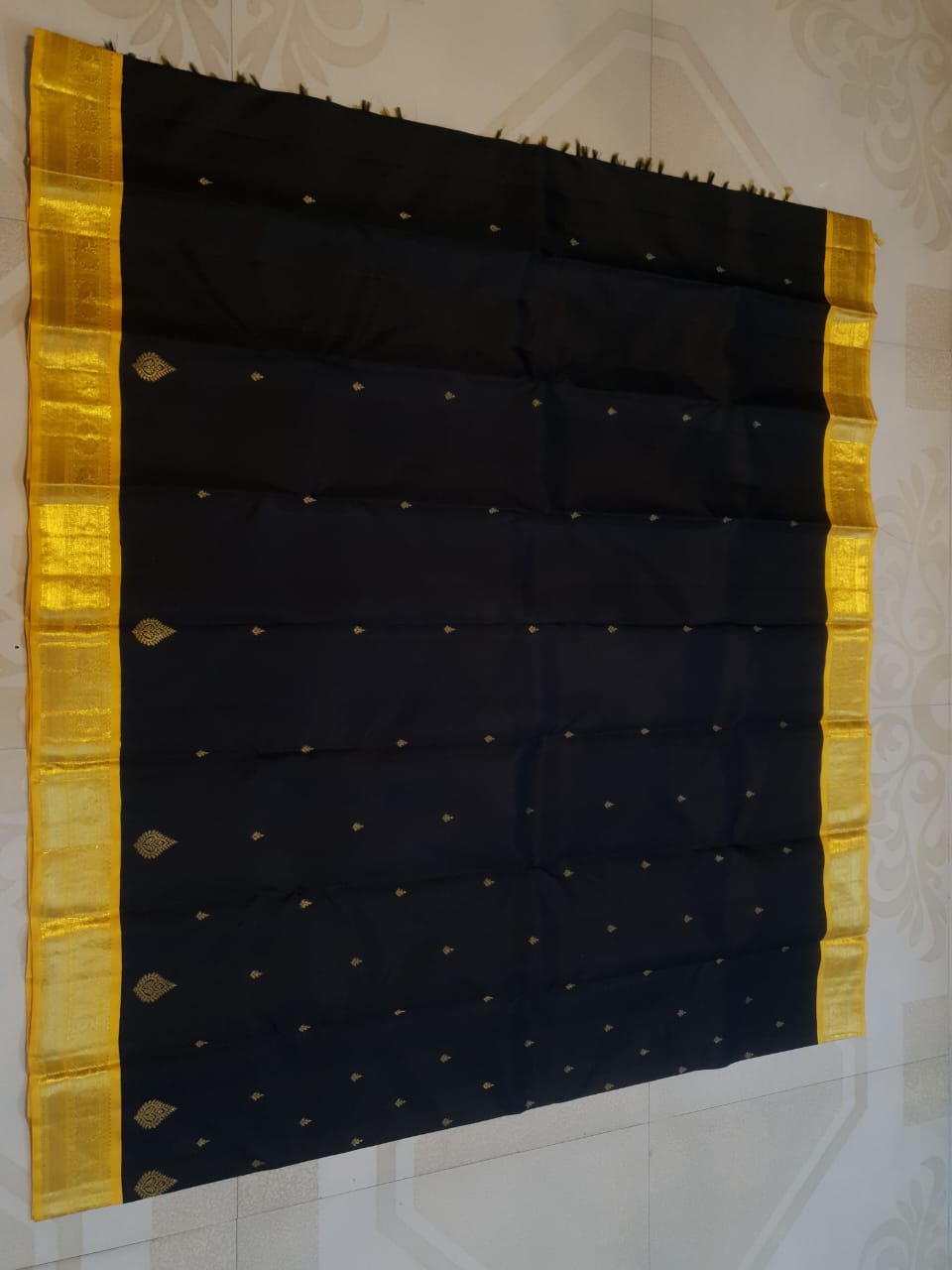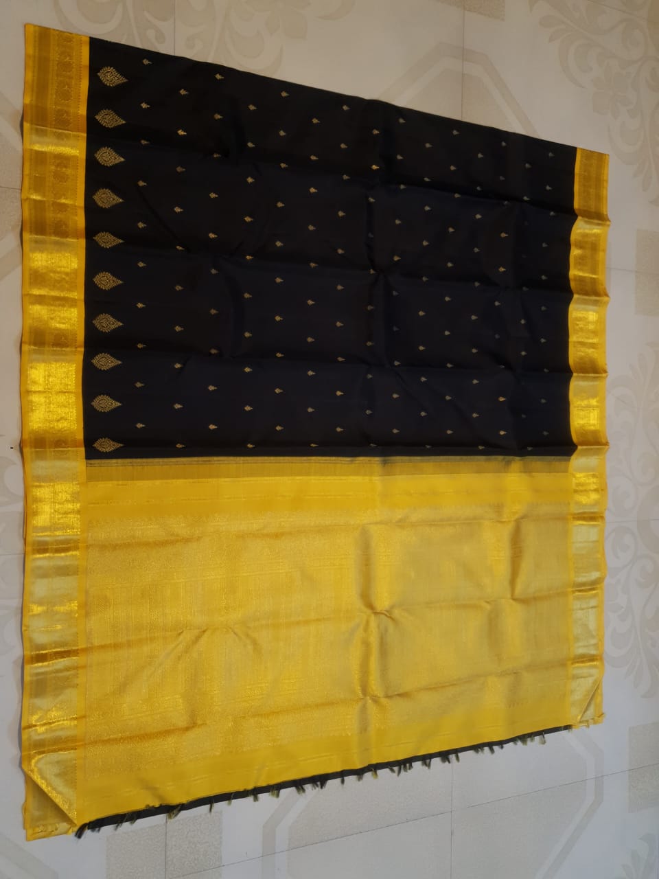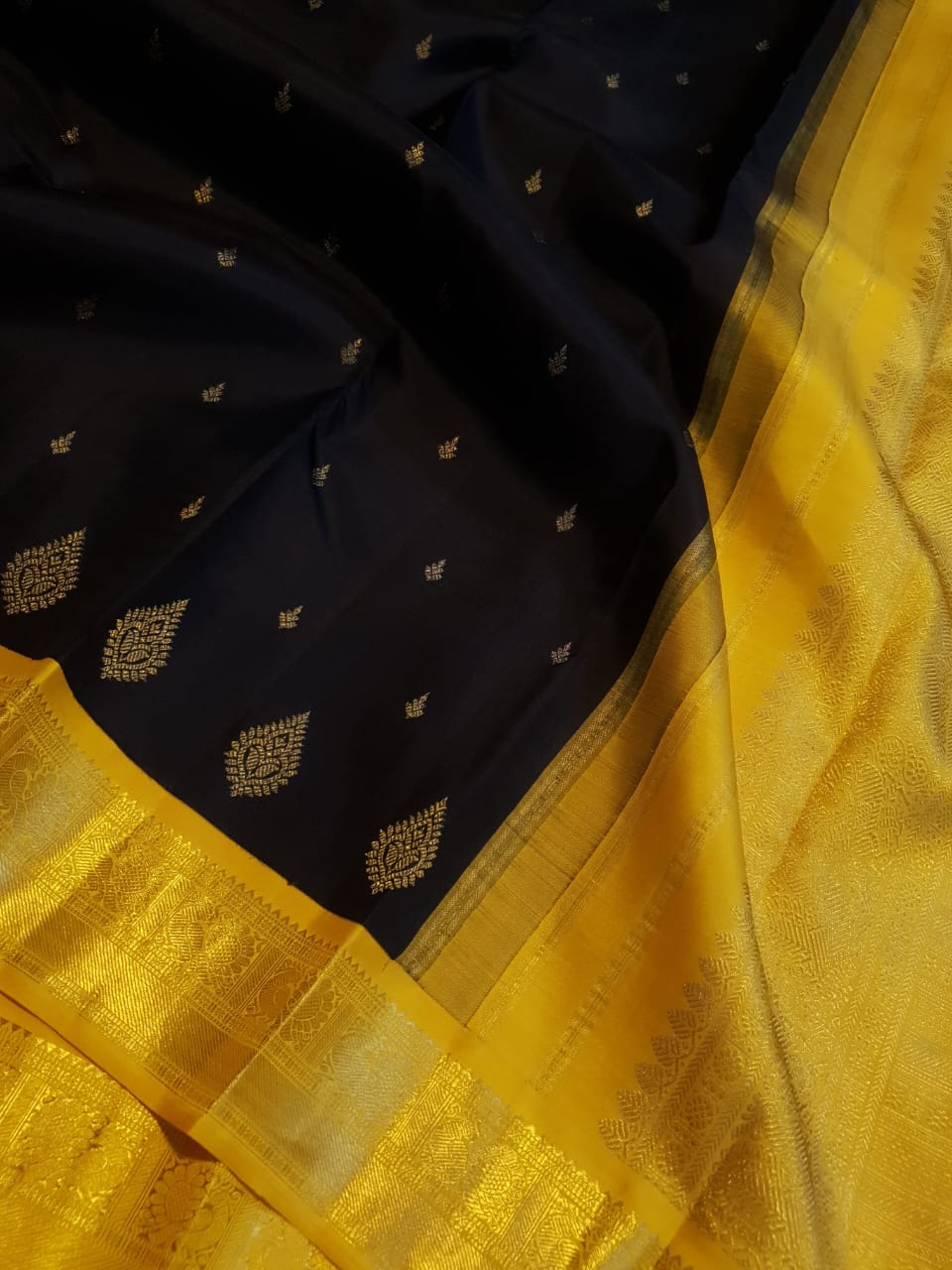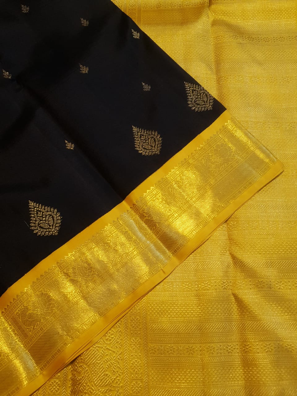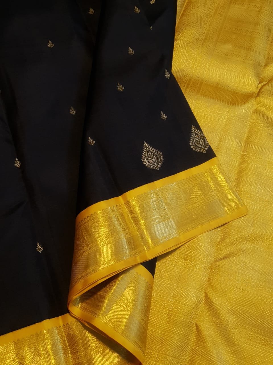 Black Kanchipuram Handloom 4G Pure Gold Pattu Silk Saree