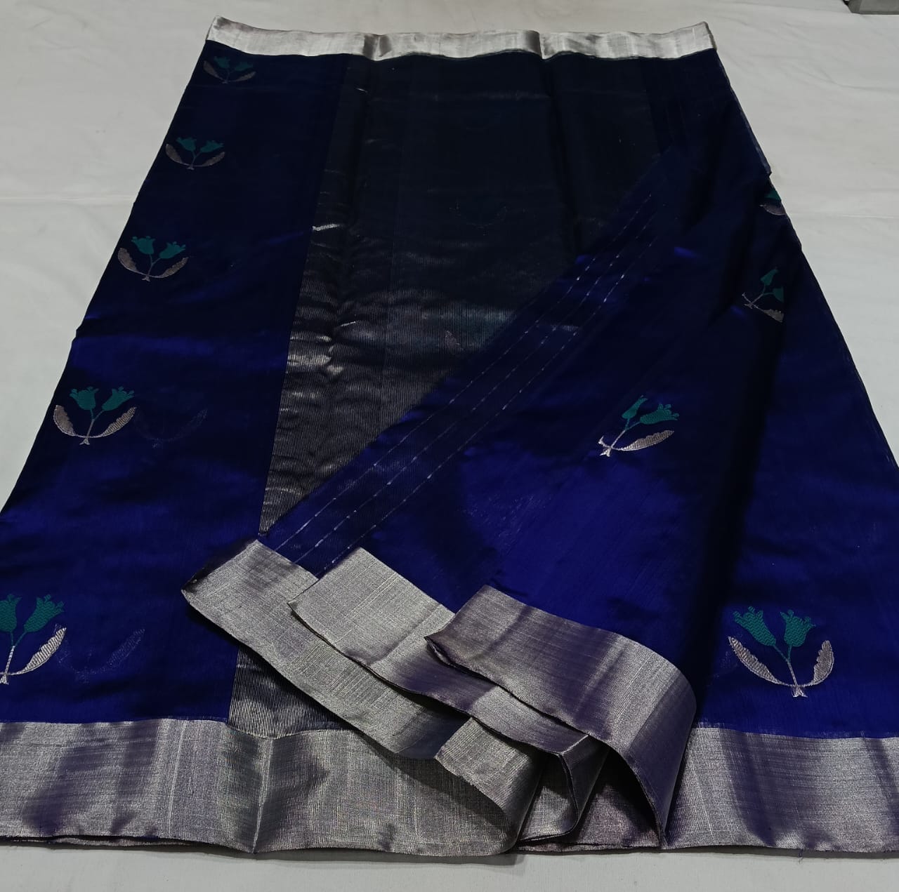 Royal Blue Chanderi Handloom Pattu Silk Handwork Saree