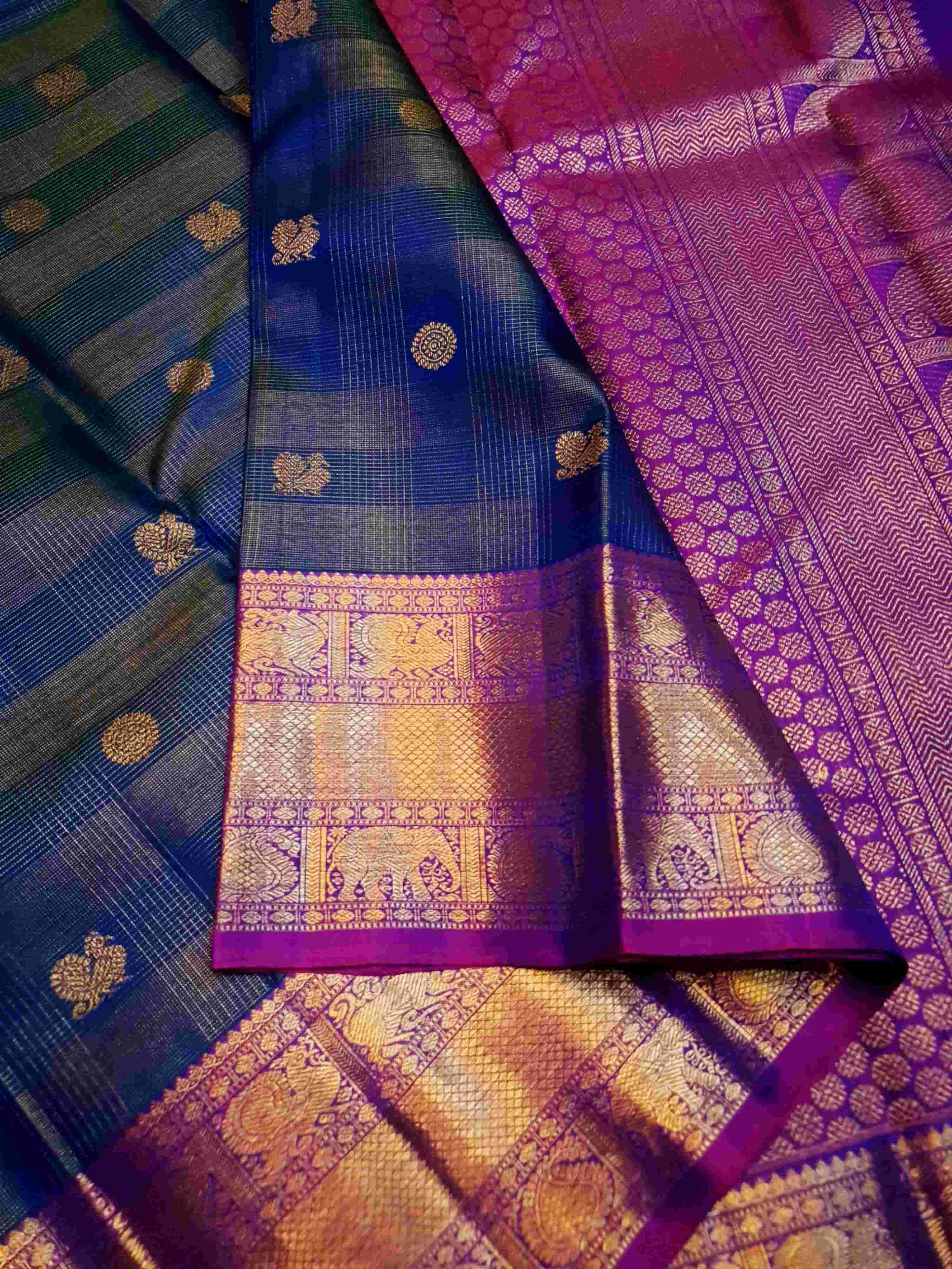 Dual Tone Purple Kanchipuram Handloom 4G Pure Gold Pattu Silk Saree
