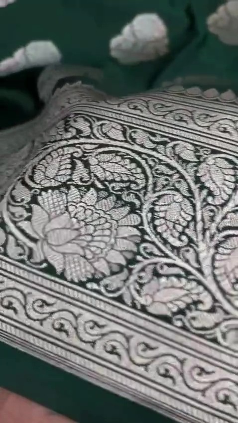 Green Banarasi Satin Katan Silk Swarovski Jangla Saree