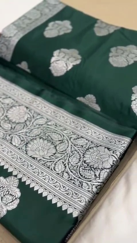 Bottle Green Banarasi Satin Katan Silk Saree