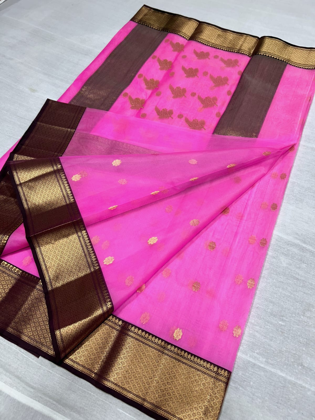 Hot Pink Chanderi Handloom Katan Silk Nakshi Saree