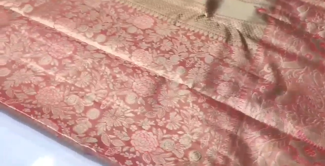 Coral Kanchipuram Handloom Tissue Brocade Meenakari Silk Saree