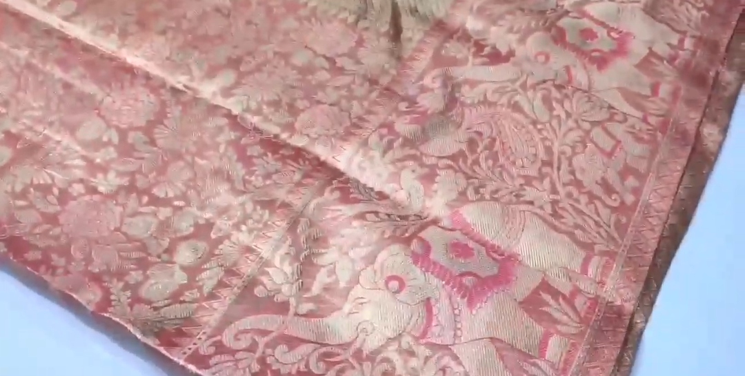 Onion Pink Kanchipuram Handloom Tissue Brocade Silk Saree