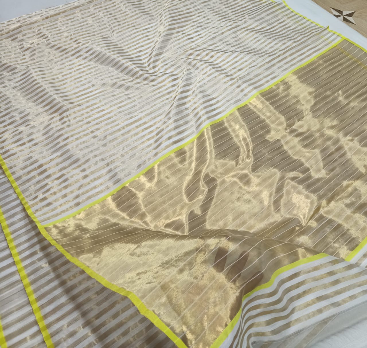 Cream Chanderi Handloom Cotton Silk Striped Saree