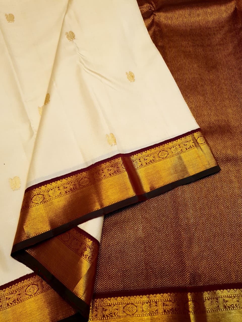 Cream Kanchipuram Handloom 2G Gold Korvai Silk Saree