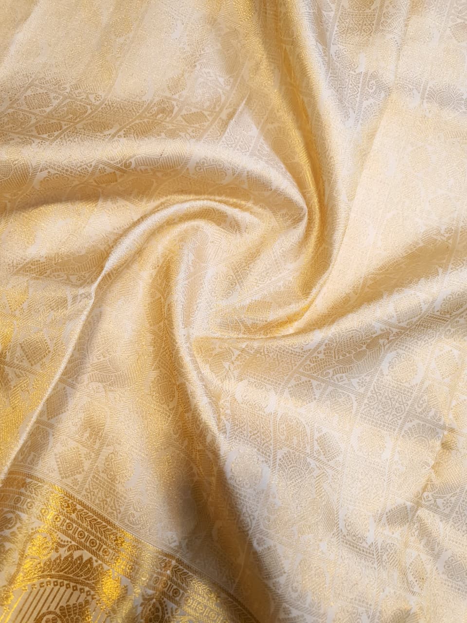 Cream Kanchipuram Handloom 2G Gold Pattu Silk Saree