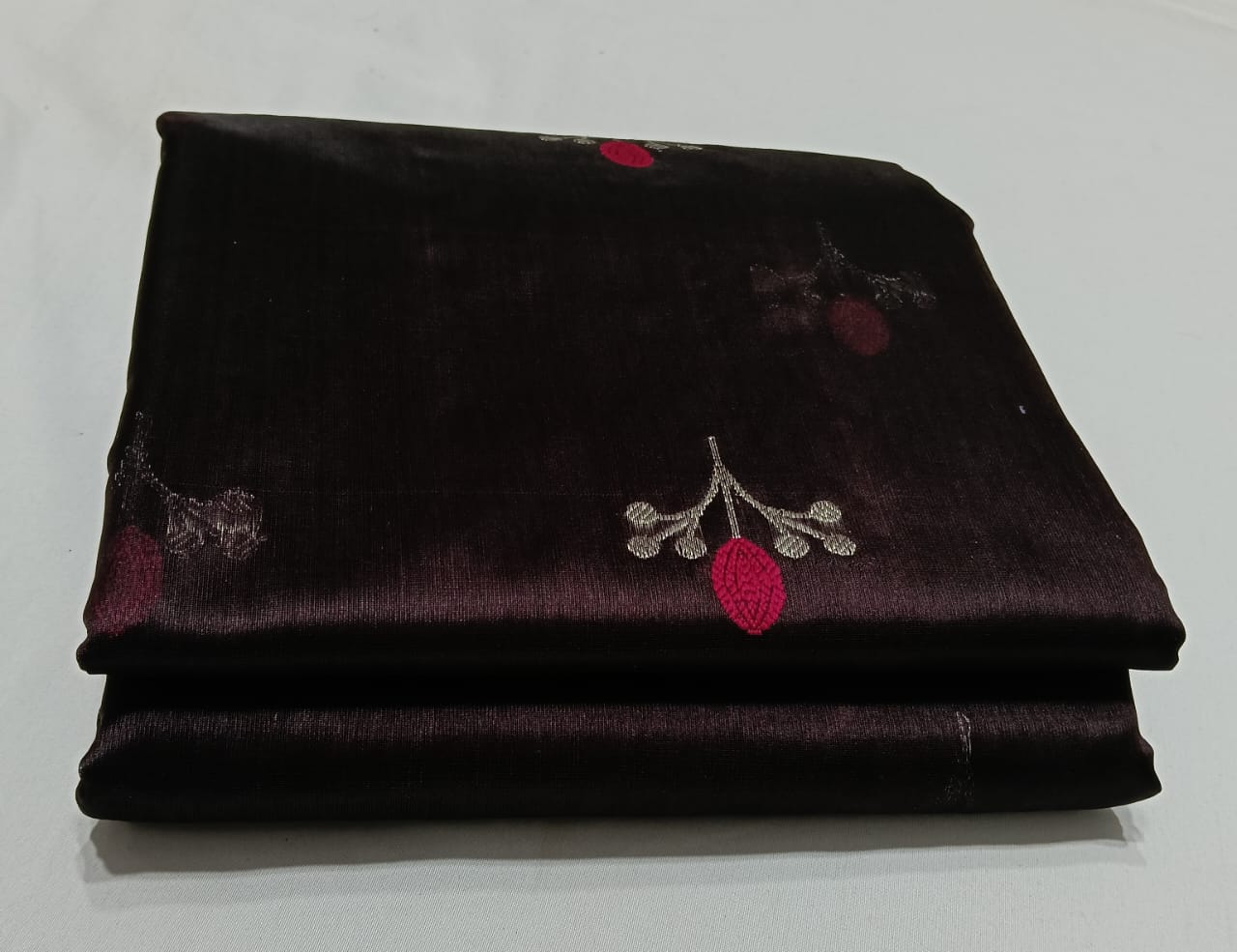 Maroon Chanderi Handloom Pattu Silk Meenakari Saree