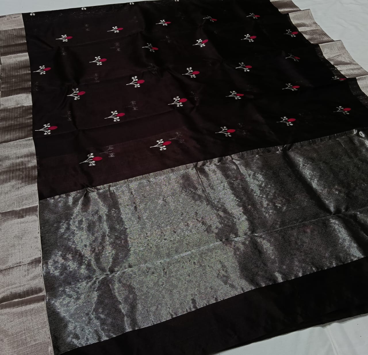 Black Chanderi Handloom Pattu Silk Saree