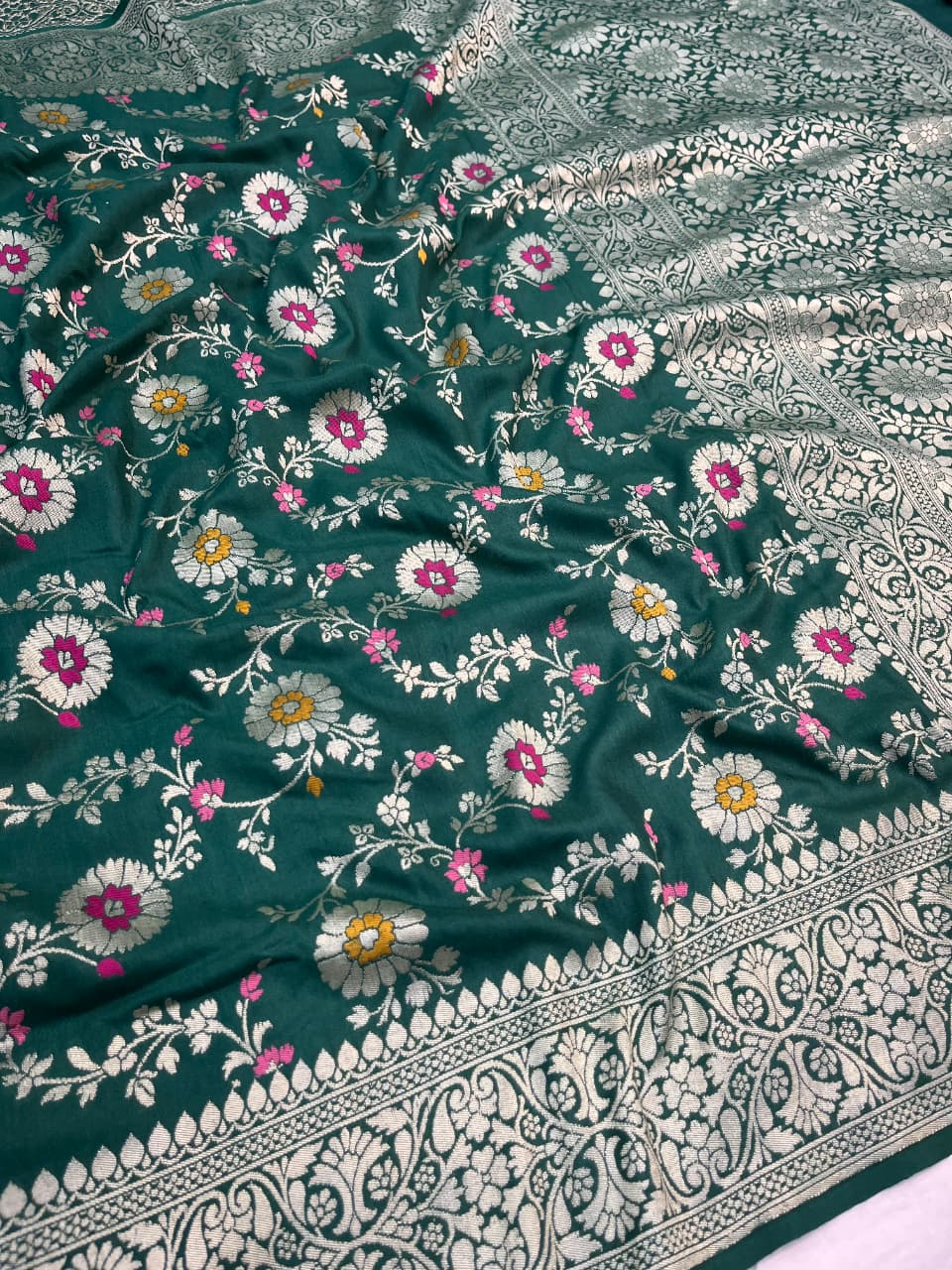 Bottle Green Banarasi Handloom Katan Silk Meenakari Saree
