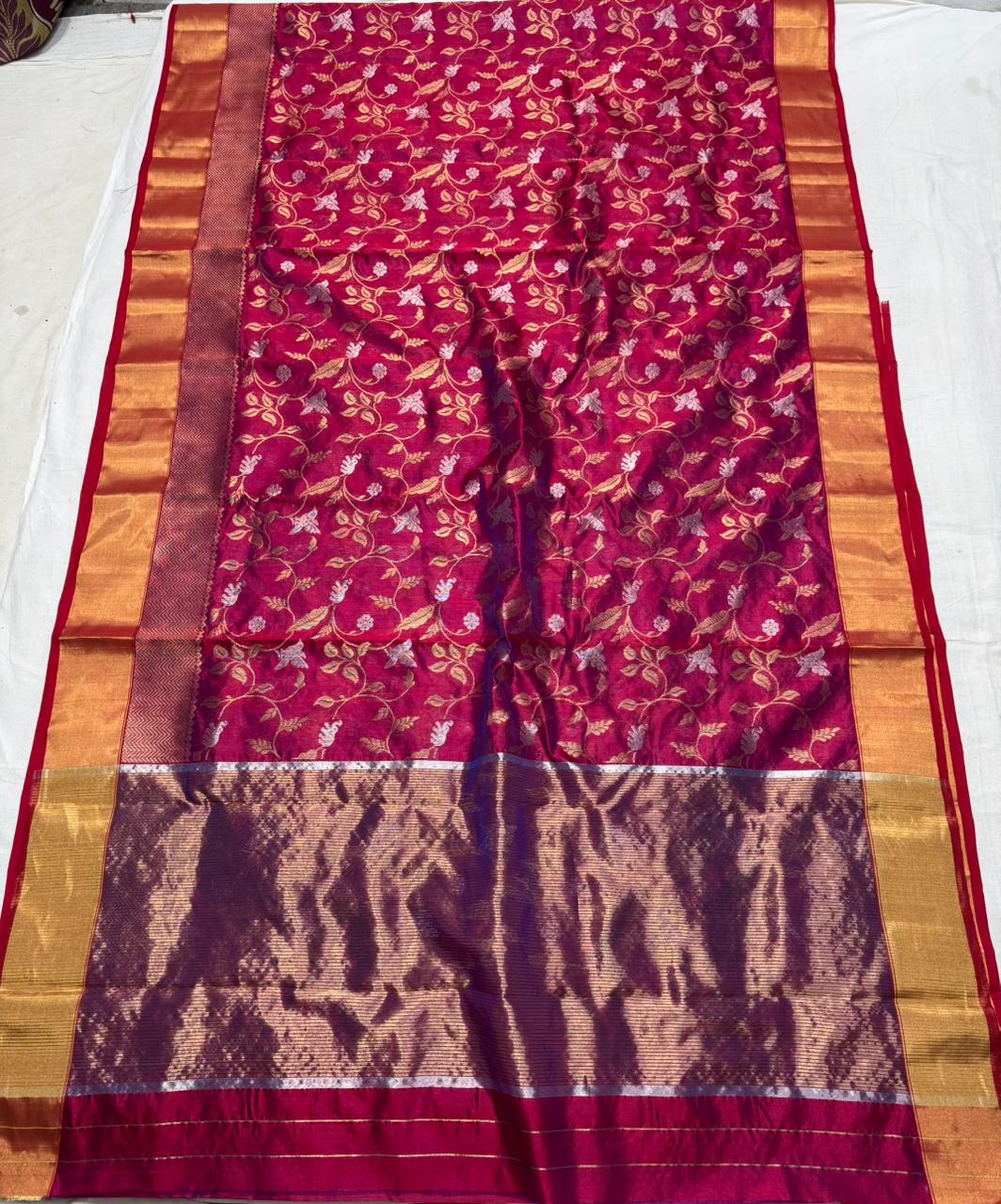 Red Chanderi Handloom Pattu Silk Meenakari Saree