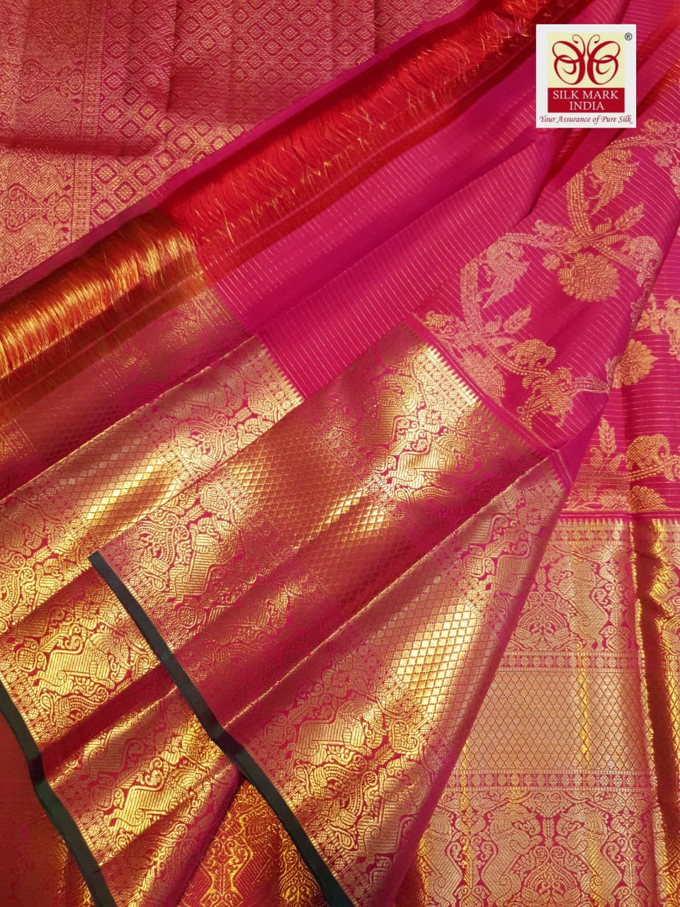 Hot Pink Kanchipuram Handloom 2G Gold Bridal Silk Saree