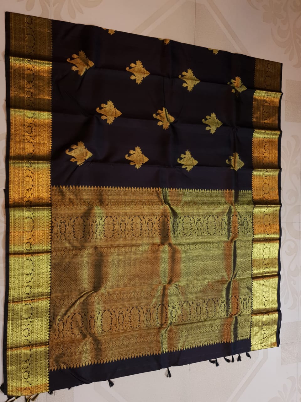 Midnight Blue Kanchipuram Handloom 2G Gold Pattu Silk Saree