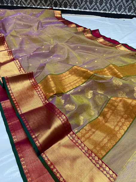 Dual Tone Purple Chanderi Handloom Katan Silk Meenakari Saree