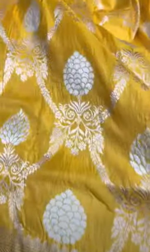 Golden Yellow Banarasi Handloom Katan Silk Meenakari Saree