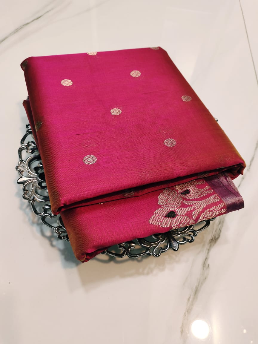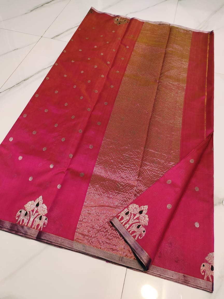 Hot Pink Chanderi Handloom Pattu Silk Meenakari Saree