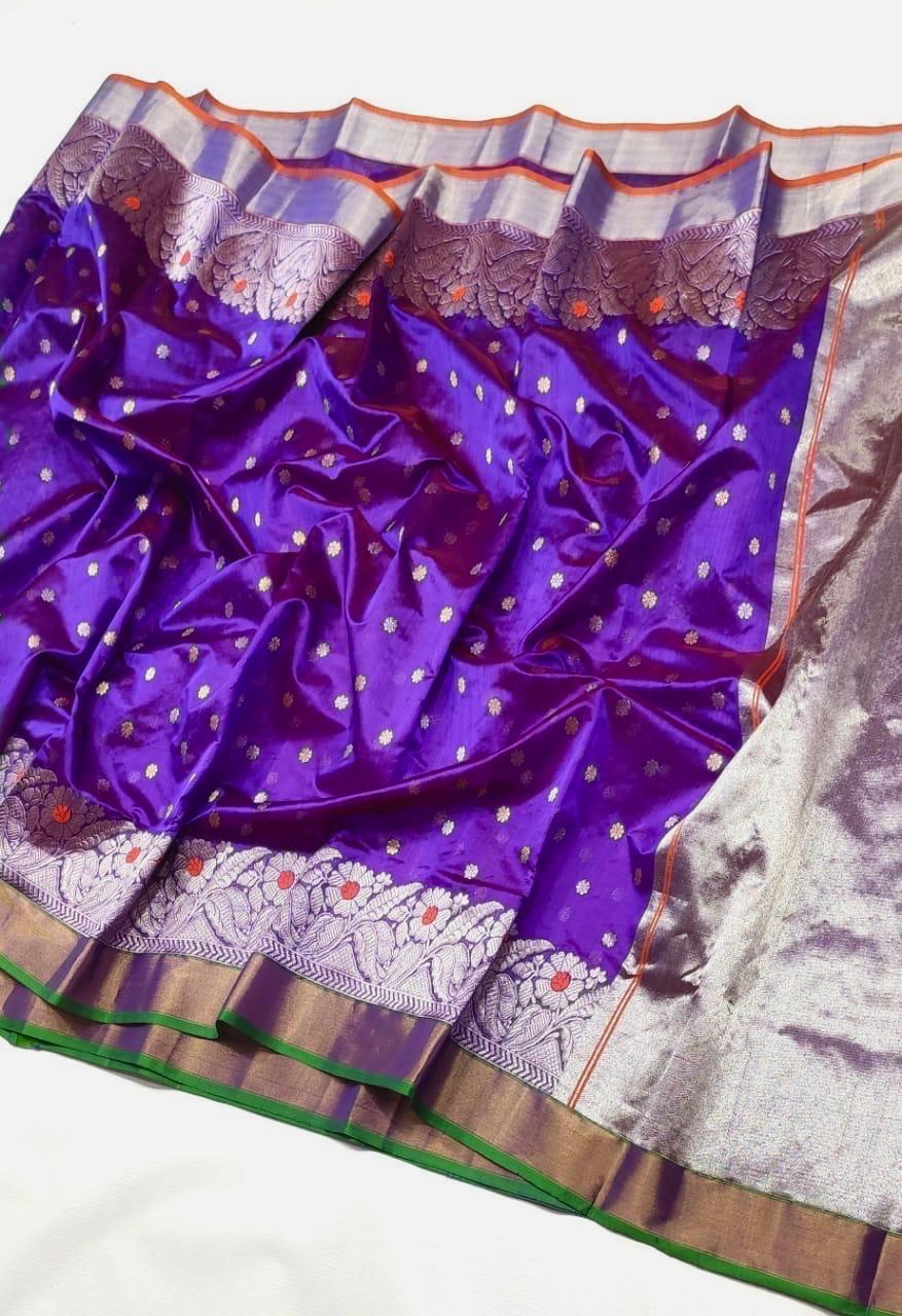 Purple Chanderi Handloom Pattu Silk Meenakari Saree