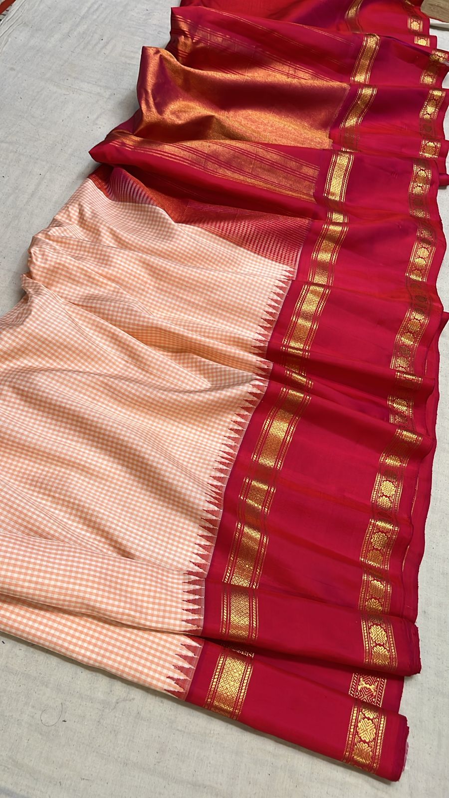 Peach Gadwal Handloom Pattu Silk Turning Borders Saree