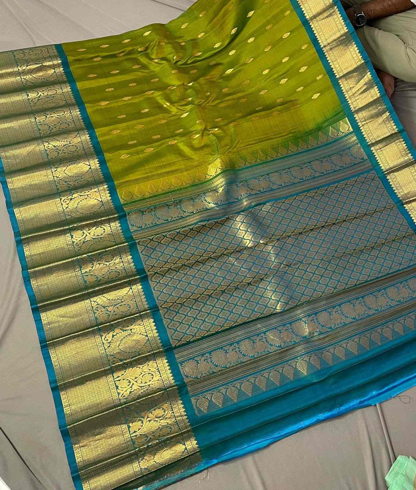 Dual Tone Sea Green Gadwal Handloom Pattu Silk Brocade Saree