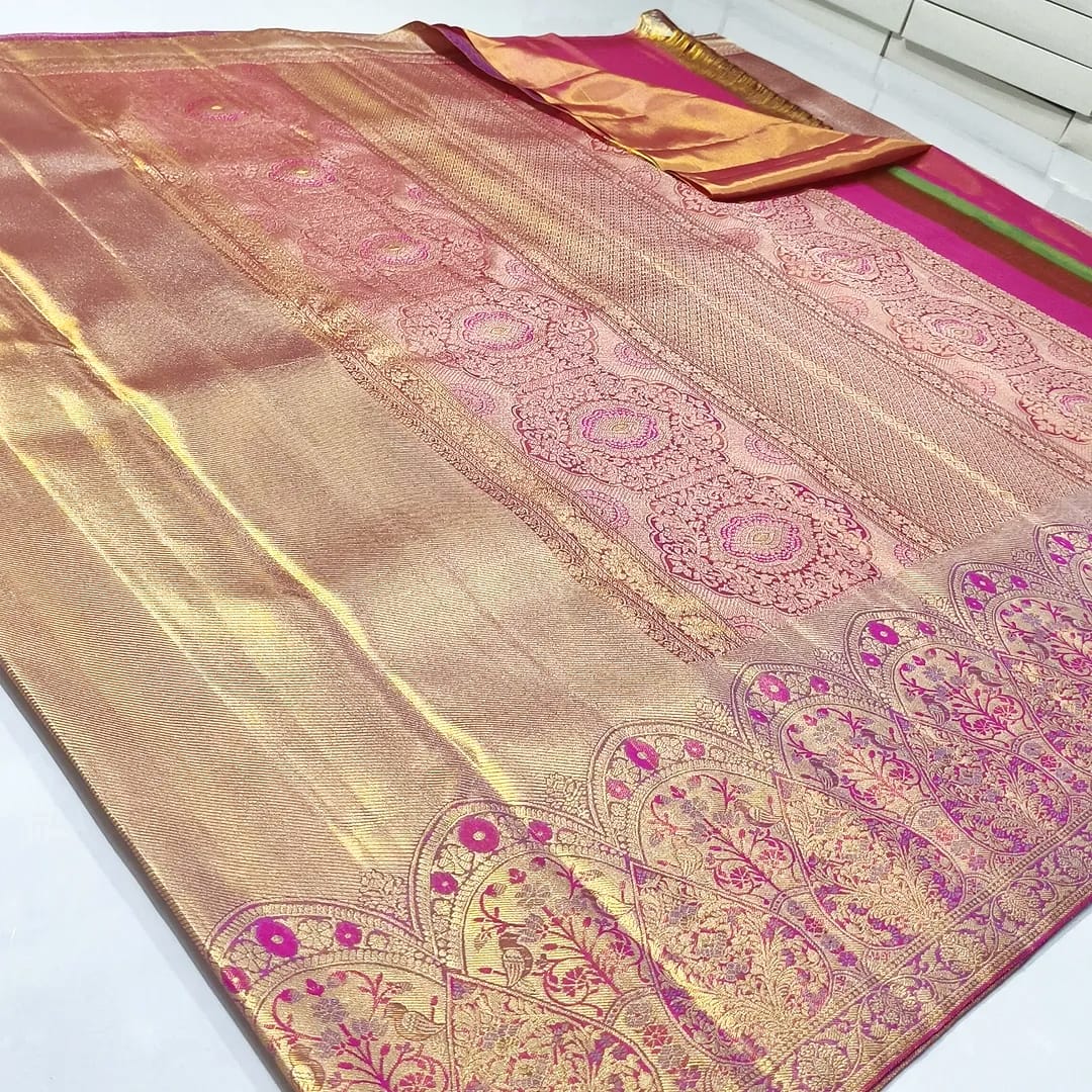 Onion Pink Kanchipuram Handloom Tissue Brocade Silk Saree