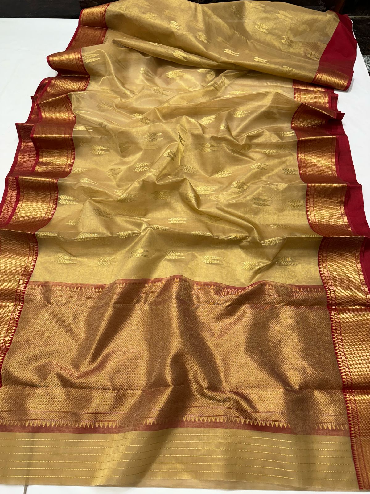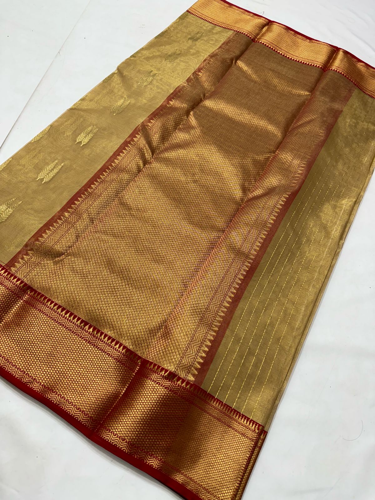 Gold Chanderi Handloom Katan Tissue Silk Saree