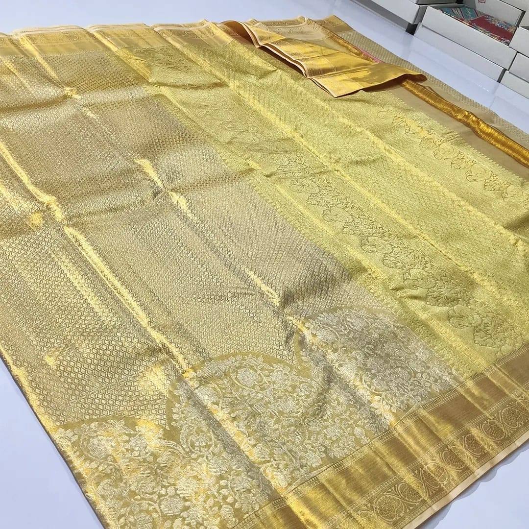 Gold Kanchipuram Handloom Tissue Brocade Silk Saree