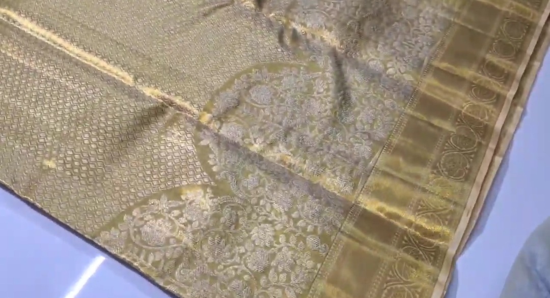 Olive Kanchipuram Handloom Tissue Brocade Silk Saree