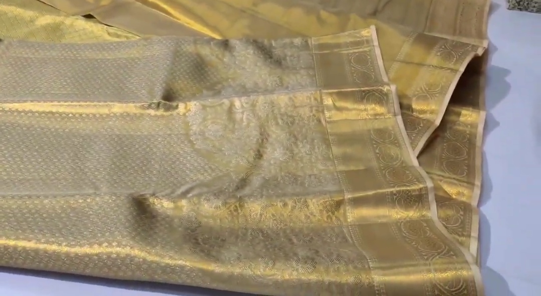 Ivory & Gold Kanchipuram Handloom Tissue Brocade Bridal Silk Saree