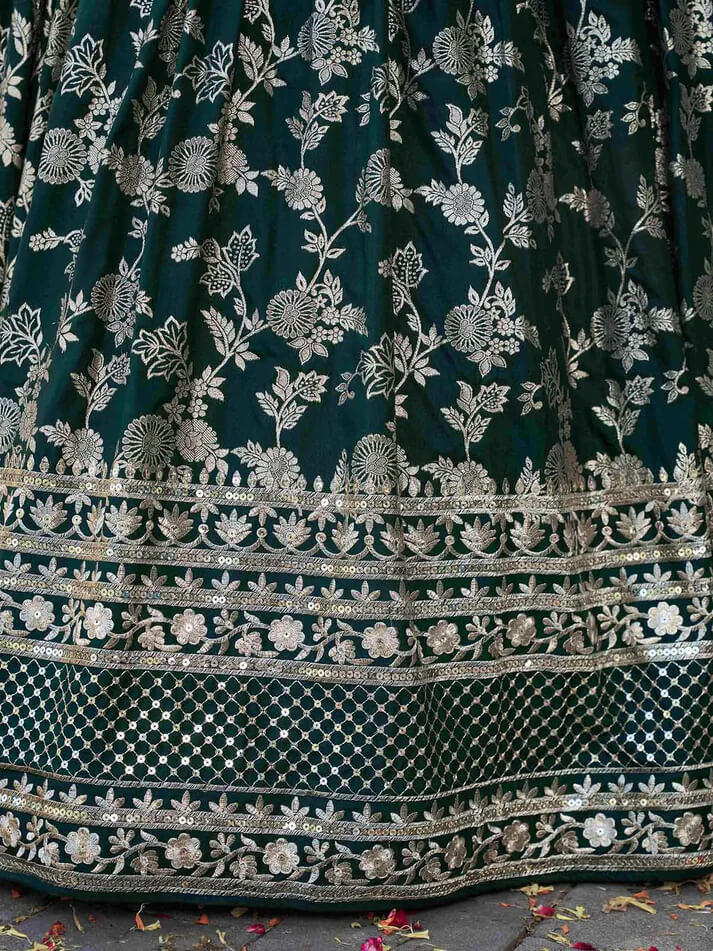 Green Jacquard Lehenga with Zari & Sequins Work