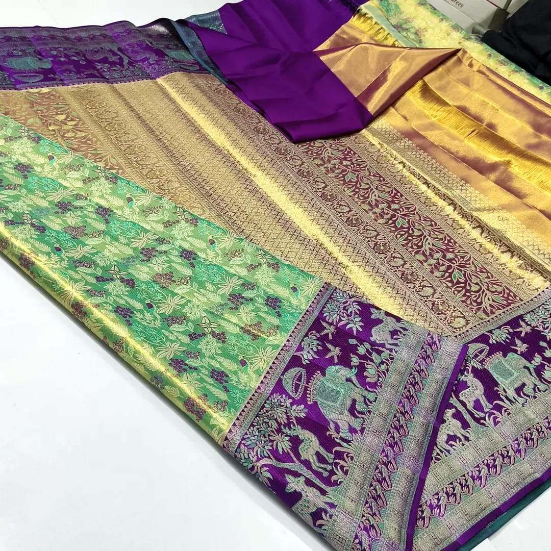 Purple Kanchipuram Handloom Resham Brocade Meenakari Silk Saree