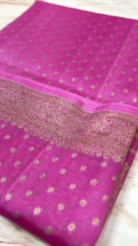 Rani Pink Banarasi Handloom Kora Organza Silk Saree