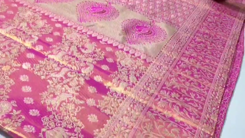 Hot Pink Kanchipuram Handloom Tissue Brocade 4D Weaving Silk Saree