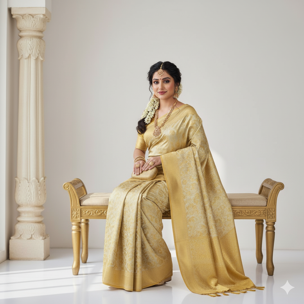 Gold Kanchipuram Handloom Tissue Brocade Silk Bridal Saree