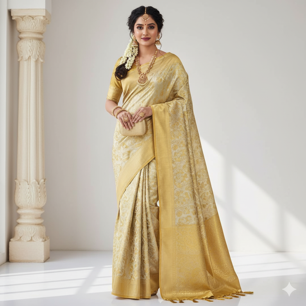 Gold Kanchipuram Handloom Tissue Brocade Silk Saree