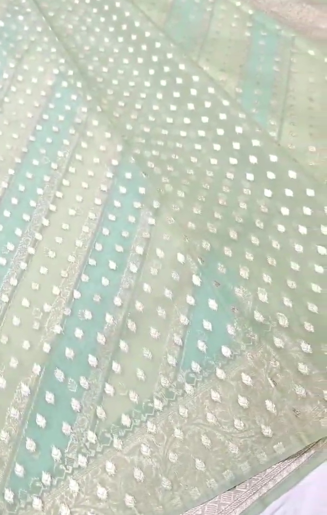 Sage Green Banarasi Handloom Kora Organza Silk Saree